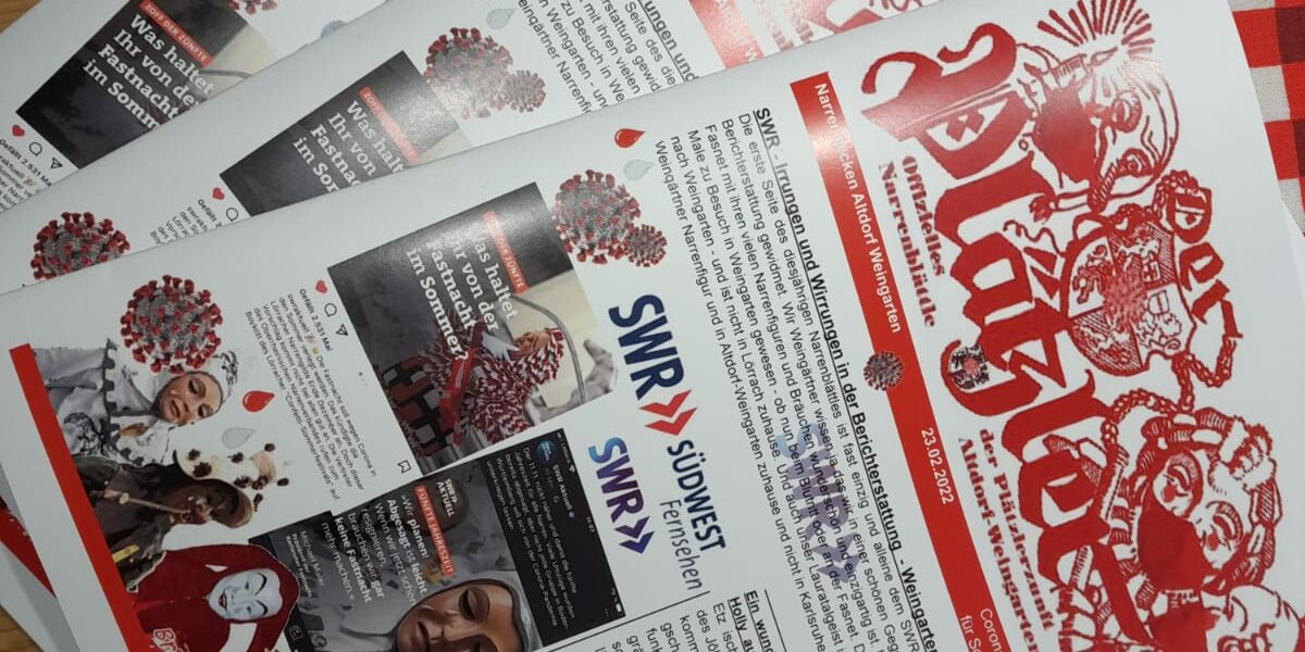 „Der Plätzler“ wird vormittags auf dem Weingartener Wochenmarkt verkauft und abends im Rahmen der Brunnenputzete. Außerdem ist es am Gumpigen Donnerstag, 24.02. beim Rathaussturm und beim Umtrunk der Plätzlerzunft im Schlösslegarten erhältlich. Weiters bieten von Brunnenputzetemittwoch bis einschließlich Fasnetsdienstag folgende Geschäfte in Weingartens Innenstadt das Narrenblättle zum Verkauf an: Kloster-Apotheke (Karlstraße), Tabak-Tee-Börse Dietlicher (Karlstraße), Stadtbuchhandlung (Löwenplatz), REWE-Markt in der Oberstadt, Bäckerei Mayer in der Unteren Breite, die Bäckerei Hausmann (Feuchtmayrstraße) und Blumen am Park. Natürlich gibt es dieses Jahr auch wieder das beliebte Rätsel in unserem Narrenblättle 🔴⚪️