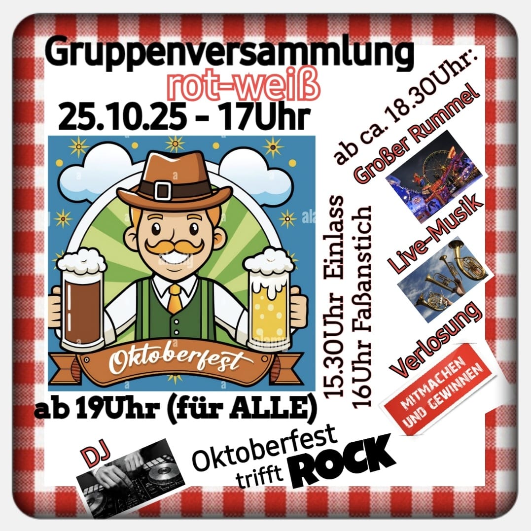 25. Oktober--17:00 - 22:00 Gruppenversammlung der rot-weissen Plätzler mit anschliessendem Oktoberfest Zunfthaus der Plätzlerzunft Am Vorderochsen 3, Weingarten